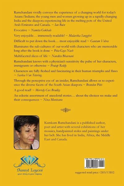 DADIJI & other stories is a colourful, sad, humorous, heartrending illustrated book of short stories that reflects Kumkum Ramchandani's deepest emotions and recollections of her life lived in several continents. She vividly conveys the experience of a changing world for today's Asians/Indians; the young and old men and women growing up in a rapidly changing India and the diaspora experienceing life in the melting pots of India, Africa, the United Arab Emirates and Canada. Ramchandani, a writer, artist and poet, has bared her soul in these stories, which are vividly illustrated by her in glorious detail. The reader will be captivated, alternately laughing and crying with the incidents which occur in diverse countries and various situations. One cannot help but identify with these stories even while learning about how different cultures deal with deeply personal situations inherent in every day experiences.