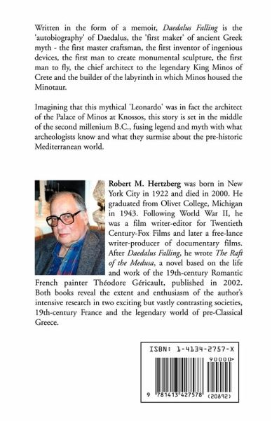 Written in the form of a memoir, Daedalus Falling is the 'autobiography' of Daedalus, the 'first maker' of ancient Greek myth - the first master craftsman, the first inventor of ingenious devices, the first man to create monumental sculpture, the first man to fly, the chief architect to the legendary King Minos of Crete and the builder of the labyrinth in which Minos housed the Minotaur. Imagining that this mythical 'Leonardo' was in fact the architect of the Palace of Minos at Knossos, this story is set in the middle of the second millenium B.C., fusing legend and myth with what archeologists know and what they surmise about the pre-historic Mediterranean world.