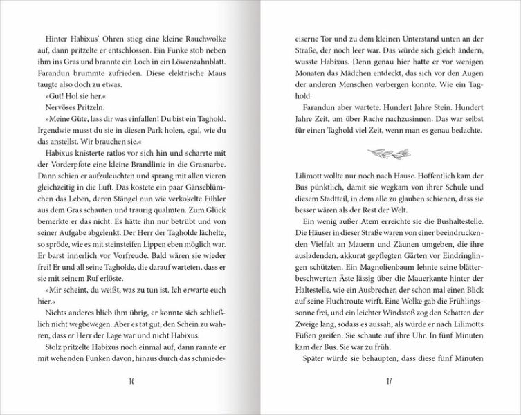 Doch dann kreuzt ein merkwürdiges, kleines, funkensprühendes Wesen Lilimotts Weg - und in ihrem Leben ist nichts mehr so, wie es war. Das Wesen behauptet, Lilimott sei die "Große Retterin", der es vorherbestimmt ist, die verzauberten Lichtgeister zu erlösen. Und schon ist Lilimott mittendrin in einem Abenteuer, in dem sie über ihrenSchatten springen muss, wenn sie nicht nur Tagholde und Nachtspinste, sondern auch ihre Familie und die ganze Stadt retten will ...