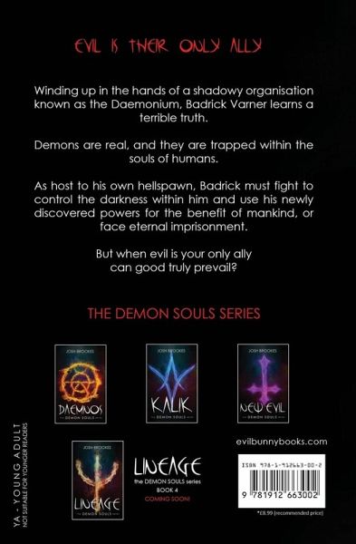 Winding up in the hands of shadowy organisation known as the Daemonium, Badrick Varner learns a terrible truth. Demons are real, and they are trapped within the souls of humans. As host to his own hellspawn, Badrick must fight to control the darkness within him and use his newly discovered powers for the benefit of mankind, or face eternal imprisonment. But when evil is your only ally can good truly prevail?