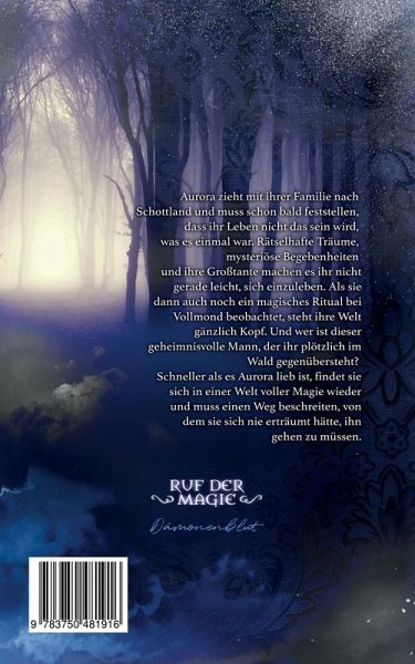 Aurora zieht mit ihrer Familie nach Schottland und muss schon bald feststellen, dass ihr Leben nicht das sein wird, was es einmal war. Rätselhafte Träume, mysteriöse Begebenheiten und ihre Großtante machen es ihr nicht gerade leicht, sich einzuleben. Als sie dann auch noch ein magisches Ritual bei Vollmond beobachtet, steht ihre Welt gänzlich Kopf. Und wer ist dieser geheimnisvolle Mann, der ihr plötzlich im Wald gegenübersteht? Schneller als es Aurora lieb ist, findet sie sich in einer Welt voller Magie wieder und muss einen Weg beschreiten, von dem sie sich nie erträumt hätte, ihn gehen zu müssen.Band 1 der Dilogie aus der Reihe "Ruf der Magie".