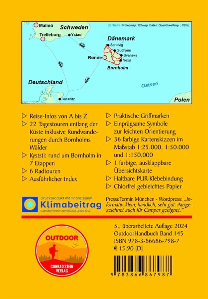 Bornholm, die Insel in der südlichen Ostsee nahe der südschwedischen Küste, gehört zum Königreich Dänemark und zählt zu den schönsten und vielseitigsten Inseln der Ostsee. Herausragend ist die Küstenlandschaft aus Fels und Sand, die auf kleinem Raum sehr unterschiedliche Formationen hervorgebracht hat, die über spannende Küstenpfade erschlossen und auf denen herrliche Wanderungen möglich sind. Die Wälder im Inselinneren locken mit spannenden Rundwegen und die hübschen kleinen Küstenorte laden zum Verweilen ein. Radfahrer können auf ein gut ausgebautes Radwegenetz zurückgreifen, welches Natur und Kultur an Küste und Inland berührt und ebenfalls abwechslungsreiche Strecken und Rundtouren bietet. Das Buch ist in erster Linie für Aktivurlauber geschrieben, die einen genussvollen, abwechslungsreichen und doch sportlichen Urlaub verbringen wollen. Die vorgeschlagenen Touren verlangen ein gewisses Maß an körperlicher Fitness und sind eigentlich für jedermann/frau machbar. Sie können wunderbar in einen 14-tägigen Bornholmurlaub eingebaut werden, sodass trotzdem noch Zeit für eigenes Erleben und Erkunden bleibt. Das handliche kleine Format ist ideal für unterwegs.