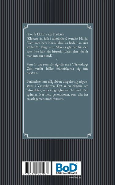 "Kor är kloka", sade Fia-Lisa. "Klokare än folk i allmänhet", svarade Hulda. "Och vore herr Karsk klok, så hade han rivit stället för länge sen. Men så går det för den som inte kan sin historia. Utan den förstår man inte sin nutid." Vem är det som rör sig där ute i Västerskog? Och varför håller människorna sig inte därifrån? Berättelsen om tallgubben utspelar sig någonstans i Västerbotten. Det är en historia om ödmjukhet, respekt, girighet och hämnd. Den spänner över flera generationer, som alla har en sak gemensamt: Hussitu.