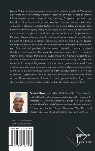 Dagara Verbal Art examines verbal art among the Dagara people of West Africa. It provides invaluable primary material for research, and does a close analysis of folktale narration, proverb usage, riddling, chanting of dirges and popular songs by male and female praise singers, and xylophone music performance as forms of verbal art. Folktales are characterized by wit, humor, and satire, and songs within tales are a mise-en-abyme, a story within a story that entertains but also enhances the narration through the participation of the audience in the performance. Moreover, Dagara tales are didactic and moralizing as a way of controlling the behavior of individuals in society. Riddling entertains but also helps to develop the cognitive abilities of children, and demands critical and logical thinking on the part of the participating audience. Proverbs were collected in context and analyzed closely for their meaning. The study also examines closely the art of speech-making, and concludes that a good locutor knows what figures of speech to use in order to enhance communication with the audience. This study concludes that an authentic theory of Dagara-and for that matter, generally African-folklore must be grounded on a thorough knowledge of the traditions, rites and rituals, and the socio-political structures that have held the society together in its historical experience. Dagara Verbal Art is an important resource for areas such as African studies, African literature and folklore, folklore in general, anthropology, culture studies, ethnomusicology, ethnic studies, and gender studies, among others.