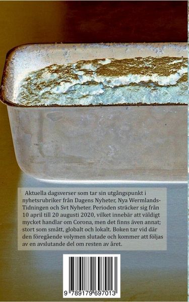 Aktuella dagsverser som tar sin utgångspunkt i nyhetsrubriker från Dagens Nyheter, Nya Wermlands-Tidningen och Svt Nyheter. Perioden sträcker sig från 10 april till 20 augusti 2020, vilket innebär att väldigt mycket handlar om Corona, men det finns även annat; stort som smått, globalt och lokalt. Boken tar vid där den föregående volymen slutade och kommer att följas en avslutande del om resten av året.