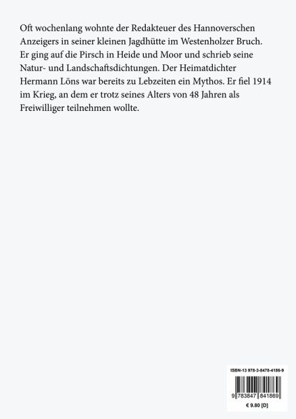 Hermann Löns: Dahinten in der Heide. Niedersächsischer Roman Lesefreundlicher Großdruck in 16-pt-Schrift Großformat, 210 x 297 mm Berliner Ausgabe, 2019 Durchgesehener Neusatz bearbeitet und eingerichtet von Theodor Borken Erstdruck: Hannoverm Verlag von Adolf Sponholtz, 1910. Inhaltsverzeichnis: Dahinten in der Heide. Der Ortolan. Der Goldammer. Der Täuber. Das Käuzchen. Die Rabenkrähe. Die Schwalbe. Der Wendehals. Der Kuckuck. Die Bachstelze. Die Winterkrähe. Die Meise. Der Markwart. Die Nachtigall. Die Heidlerche. Der Fasan. Die Lerche. Der Brachvogel. Der Text dieser Ausgabe wurde behutsam an die neue deutsche Rechtschreibung angepasst. Umschlaggestaltung von Thomas Schultz-Overhage unter Verwendung des Bildes: Arnold Lyongrün, Auf blühender Heide, 1910. Gesetzt aus der Minion Pro, 16 pt. Über den Autor: Oft wochenlang wohnte der Redakteuer des Hannoverschen Anzeigers in seiner kleinen Jagdhütte im Westenholzer Bruch. Er ging auf die Pirsch in Heide und Moor und schrieb seine Natur- und Landschaftsdichtungen. Der Heimatdichter Hermann Löns war bereits zu Lebzeiten ein Mythos. Er fiel 1914 im Krieg, an dem er trotz seines Alters von 48 Jahren als Freiwilliger teilnehmen wollte.