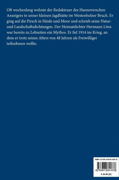 Hermann Löns: Dahinten in der Heide. Niedersächsischer Roman Lesefreundlicher Großdruck in 16-pt-Schrift Großformat, 210 x 297 mm Berliner Ausgabe, 2019 Durchgesehener Neusatz bearbeitet und eingerichtet von Theodor Borken Erstdruck: Hannoverm Verlag von Adolf Sponholtz, 1910. Inhaltsverzeichnis: Dahinten in der Heide. Der Ortolan. Der Goldammer. Der Täuber. Das Käuzchen. Die Rabenkrähe. Die Schwalbe. Der Wendehals. Der Kuckuck. Die Bachstelze. Die Winterkrähe. Die Meise. Der Markwart. Die Nachtigall. Die Heidlerche. Der Fasan. Die Lerche. Der Brachvogel. Der Text dieser Ausgabe wurde behutsam an die neue deutsche Rechtschreibung angepasst. Umschlaggestaltung von Thomas Schultz-Overhage unter Verwendung des Bildes: Arnold Lyongrün, Auf blühender Heide, 1910. Gesetzt aus der Minion Pro, 16 pt. Über den Autor: Oft wochenlang wohnte der Redakteuer des Hannoverschen Anzeigers in seiner kleinen Jagdhütte im Westenholzer Bruch. Er ging auf die Pirsch in Heide und Moor und schrieb seine Natur- und Landschaftsdichtungen. Der Heimatdichter Hermann Löns war bereits zu Lebzeiten ein Mythos. Er fiel 1914 im Krieg, an dem er trotz seines Alters von 48 Jahren als Freiwilliger teilnehmen wollte.