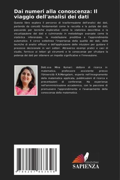 Questo libro esplora il percorso di trasformazione dell'analisi dei dati, partendo da concetti fondamentali come la raccolta e la pulizia dei dati, passando per tecniche esplorative come la statistica descrittiva e la visualizzazione dei dati e culminando in metodologie avanzate come la statistica inferenziale, la modellazione predittiva e l'apprendimento automatico. Il corso sottolinea l'importanza della qualità dei dati, delle tecniche di analisi efficaci e dell'applicazione delle intuizioni per guidare il processo decisionale in vari settori. Attraverso esempi pratici e casi di studio, fornisce ai lettori gli strumenti e le conoscenze per sfruttare la potenza dei dati per ottenere un impatto significativo e l'innovazione.