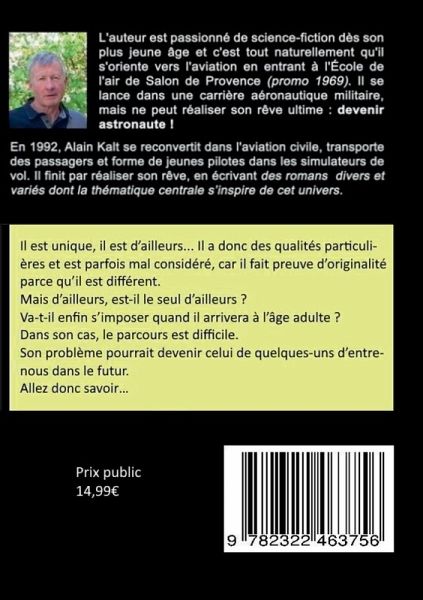 Il est unique, il est d'ailleurs... Il a donc des qualités particulières et est parfois mal considéré, car il fait preuve d'originalité parce qu'il est différent. Mais d'ailleurs, est-il le seul d'ailleurs ? Va-t-il enfin s'imposer quand il arrivera à l'âge adulte? Dans son cas, le parcours est difficile. Son problème pourrait devenir celui de quelques-uns d'entre-nous dans le futur. Allez savoir...La planète Mars, la Lune et accessoirement la Terre, sont les terrains de jeu, si l'on peut dire, de Lucius, le héros de ce roman. Évidemment les robots et les lois de la robotique y sont présents.