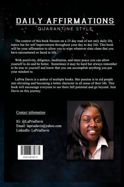 The context of this book focuses on a 25 day read of not only daily life topics but for self-improvement throughout your day to day life. This book will be your affirmation to allow you to wipe whatever slate clean that you encountered or faced in life. With positivity, diligence, meditation, and inner peace you can allow yourself to do and be better. It may be hard but always remember to be true to yourself and know that you can accomplish anything you put your mindset to.