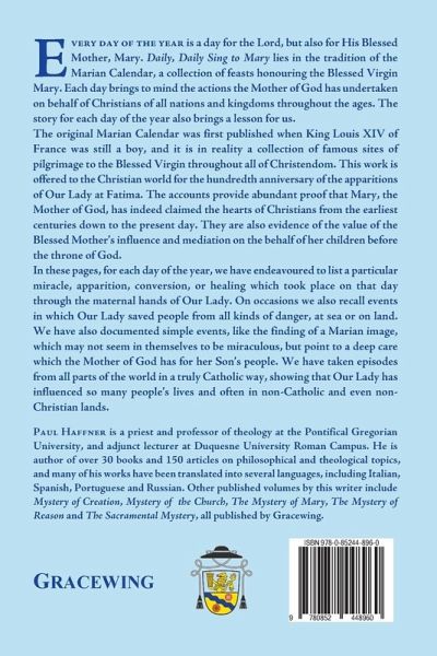 Every day of the year is a day for the Lord, but also for His Blessed Mother, Mary. Daily, Daily Sing to Mary lies in the tradition of the Marian Calendar, a collection of feasts honouring the Blessed Virgin Mary. Each day brings to mind the actions the Mother of God has undertaken on behalf of Christians of all nations and kingdoms throughout the ages. The story for each day of the year also brings a lesson for us. The original Marian Calendar was first published when King Louis XIV of France was still a boy, and it is in reality a collection of famous sites of pilgrimage to the Blessed Virgin throughout all of Christendom. This work is offered to the Christian world for the hundredth anniversary of the apparitions of Our Lady at Fatima. The accounts provide abundant proof that Mary, the Mother of God, has indeed claimed the hearts of Christians from the earliest centuries down to the present day. They are also evidence of the value of the Blessed Mother’s influence and mediation on the behalf of her children before the throne of God. In these pages, for each day of the year, we have endeavoured to list a particular miracle, apparition, conversion, or healing which took place on that day through the maternal hands of Our Lady. On occasions we also recall events in which Our Lady saved people from all kinds of danger, at sea or on land. We have also documented simple events, like the finding of a Marian image, which may not seem in themselves to be miraculous, but point to a deep care which the Mother of God has for her Son’s people. We have taken episodes from all parts of the world in a truly Catholic way, showing that Our Lady has influenced so many people’s lives and often in non-Catholic and even non-Christian lands.
