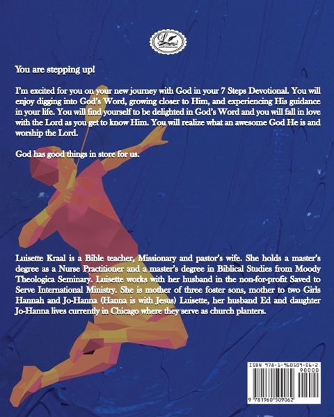 You are stepping up! I'm excited for you on your new journey with God in your 7 Steps Devotional. You will enjoy digging into God's Word, growing closer to Him, and experiencing His guidance in your life. You will find yourself to be delighted in God's Word and you will fall in love with the Lord as you get to know Him. You will realize what an awesome God He is and worship the Lord. God has good things in store for us.