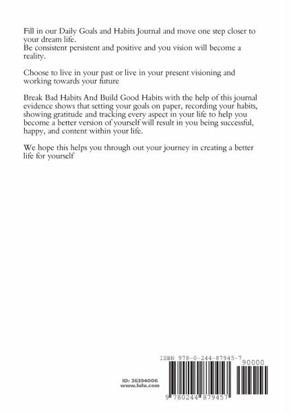 The Daily Habits and Goals book is designed to help you keep your life align with your goals, helping you build good habits and break bad habits. With a variety of helpful tools inside this book aims to motivate, inspire, and help you work towards your dream life. Fill out the required fills every day, week and month and you are already one step closer in achieving your goals and dreams