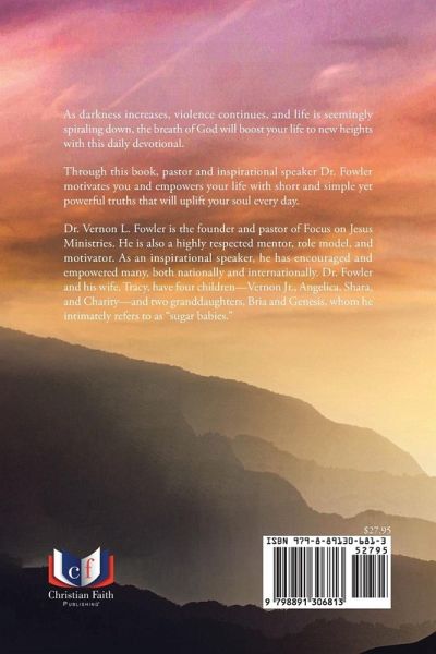 As darkness increases, violence continues, and life is seemingly spiraling down, the breath of God will boost your life to new heights with this daily devotional. Through this book, pastor and inspirational speaker Dr. Fowler motivates you and empowers your life with short and simple yet powerful truths that will uplift your soul every day. Dr. Vernon L. Fowler is the founder and pastor of Focus on Jesus Ministries. He is also a highly respected mentor, role model, and motivator. As an inspirational speaker, he has encouraged and empowered many, both nationally and internationally. Dr. Fowler and his wife, Tracy, have four children--Vernon Jr., Angelica, Shara, and Charity--and two granddaughters, Bria and Genesis, whom he intimately refers to as "sugar babies."