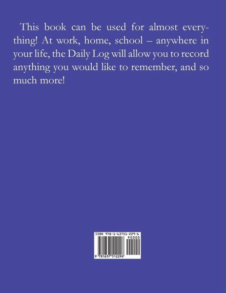 This book can be used for almost everything! At work, at home, at school - anywhere in your life, the Daily Log for Writers will allow you to record anything you would like to remember, and so much more!