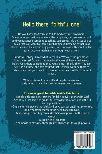 Did you know that prayer is one of the most powerful tools we have? According to a recent study, 60% of boys who pray feel more peaceful and calm. If you're struggling with anxiety, stress, or just need some guidance, you're not alone. It can be challenging to find ways to connect with God, but Daily Prayer Book for Boys: Collection of Prayers has got you covered! With over 24 carefully crafted prayers and reflection questions, this book is designed specifically for boys aged 8-13. Whether you're new to prayer or an experienced young Christian, this book will guide you in developing a deep and meaningful relationship with God. Here's what you'll find inside this book: 24 Prayers for Boys, divided into three parts, each covering 8 body chapters, with related scripture references Easy-to-understand language suitable for 4-8th graders A variety of topics relevant to boys, such as self-esteem, friendships, school, and family Reflection questions after each prayer, designed to help you apply the lesson to your life Boys grow to love God with this book as it: Develop a strong, lasting relationship with God that will guide you through life's challenges Gain confidence in yourself and your abilities Build better relationships with your family and friends Learn how to handle stress, anxiety, and other difficult emotions Find comfort and peace in God's love and grace Daily Prayer Book for Boys: Collection of Prayers makes a perfect gift for any boy in your life who wants to grow spiritually and learn how to connect with God. Give the gift of faith, and watch your loved one thrive! Start your journey to a deeper relationship with God today!