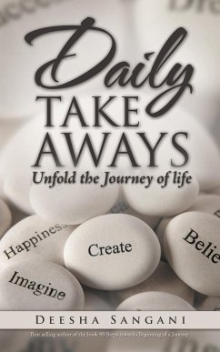 We all need Daily Take Aways in this busy world to live life full of love, happiness, and authenticity. I always believe that in today's world, we all need quick yet most meaningful takeaway learning. All the days are not the same-some are good other days are tough to deal with. Daily Take Aways will help everyone to take away quick learning, which will not only change our days but also change our view toward life. Daily Take Aways covers essential topics such as dream, adversity, success, how to deal with life, relationships, goals, impact, legacy. Daily Take Aways would definitely become part of people's life. Daily Take Aways promise to change people's life from ordinary to extraordinary also help you to not only deal with life but how to lead life.