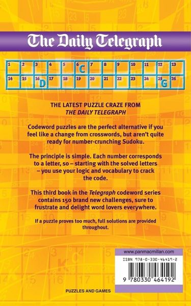Codewords have been one of The Telegraph's most successful puzzles since their introduction to the paper in summer 2003, and the first book in this new series of Codewords books from The Telegraph was testiment to their popularity. The principle is simple: the unsolved grid shows squares containing numbers, each of which corresponds to a letter of the alphabet. Between two and five solved letters are given, and the remainder must be discovered through a combination of logic and word power. This collection contains 150 brand new puzzles. Can you crack the code?