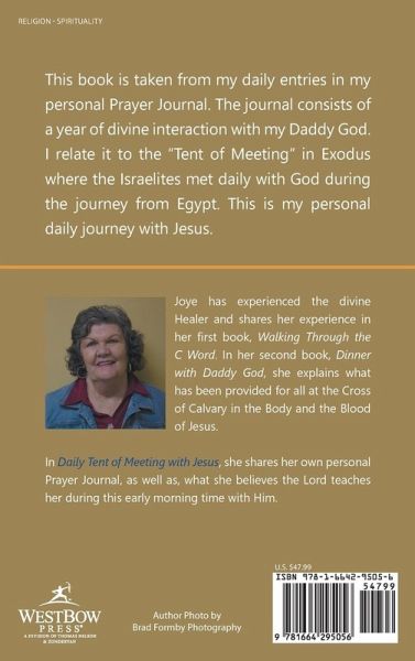 This book is taken from my daily entries in my personal Prayer Journal. The journal consists of a year of divine interaction with my Daddy God. I relate it to the "Tent of Meeting" in Exodus where the Israelites met daily with God during the journey from Egypt. This is my personal daily journey with Jesus.