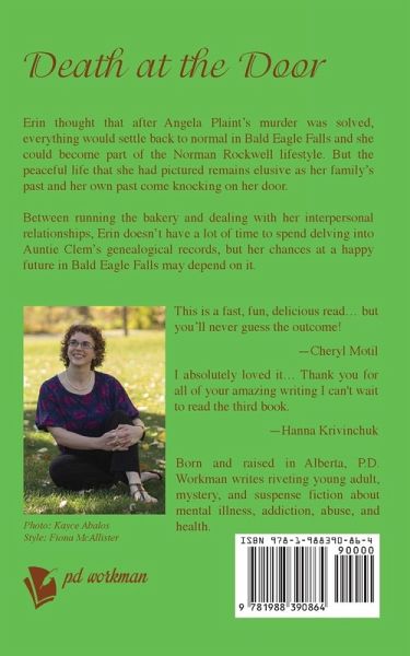 From USA Today Bestselling Author, P.D. Workman! Erin Price is back with more tasty treats Erin thought that after Angela Plaint's murder was solved, everything would settle back to normal in Bald Eagle Falls and she could become part of the Norman Rockwell lifestyle. But the peaceful life that she had pictured remains elusive as her family's past. Then her own past comes knocking on her door. Between running the bakery and dealing with her interpersonal relationships, Erin doesn't have a lot of time to spend delving into Auntie Clem's genealogical records, but her chances at a happy future in Bald Eagle Falls may depend on it. ¿¿¿¿This is the second book in this series. This reader is getting quite emotionally caught up in the main characters. Great whodunit. I must confess that my favorite part is the mystery of the identity of The Jam Lady, but I refuse to say whether or not that mystery is solved. BRAVO! Like baking mysteries? Cats, dogs, and other pets? Award-winning and USA Today Bestselling Author P.D. Workman brings readers back to small town Bald Eagle Falls for another culinary cozy mystery to be solved by gluten-free baker Erin Price and her friends. Have your gluten-free cake and eat it too. Sink your teeth into this sweet treat now!