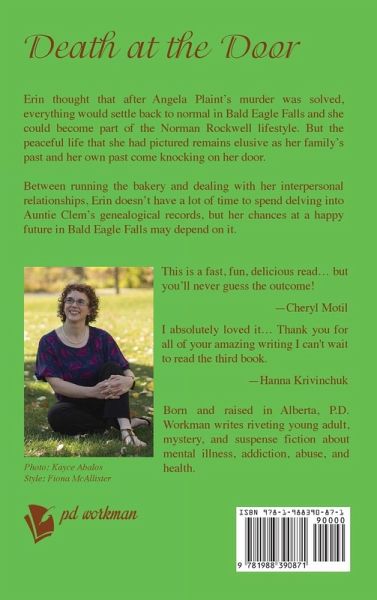 From USA Today Bestselling Author, P.D. Workman! Erin Price is back with more tasty treats Erin thought that after Angela Plaint's murder was solved, everything would settle back to normal in Bald Eagle Falls and she could become part of the Norman Rockwell lifestyle. But the peaceful life that she had pictured remains elusive as her family's past. Then her own past comes knocking on her door. Between running the bakery and dealing with her interpersonal relationships, Erin doesn't have a lot of time to spend delving into Auntie Clem's genealogical records, but her chances at a happy future in Bald Eagle Falls may depend on it. ¿¿¿¿This is the second book in this series. This reader is getting quite emotionally caught up in the main characters. Great whodunit. I must confess that my favorite part is the mystery of the identity of The Jam Lady, but I refuse to say whether or not that mystery is solved. BRAVO! Like baking mysteries? Cats, dogs, and other pets? Award-winning and USA Today Bestselling Author P.D. Workman brings readers back to small town Bald Eagle Falls for another culinary cozy mystery to be solved by gluten-free baker Erin Price and her friends. Have your gluten-free cake and eat it too. Sink your teeth into this sweet treat now!
