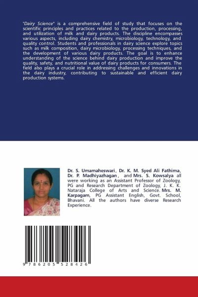 "Dairy Science" is a comprehensive field of study that focuses on the scientific principles and practices related to the production, processing, and utilization of milk and dairy products. The discipline encompasses various aspects, including dairy chemistry, microbiology, technology, and quality control. Students and professionals in dairy science explore topics such as milk composition, dairy microbiology, processing techniques, and the development of various dairy products. The goal is to enhance understanding of the science behind dairy production and improve the quality, safety, and nutritional value of dairy products for consumers. The field also plays a crucial role in addressing challenges and innovations in the dairy industry, contributing to sustainable and efficient dairy production systems.