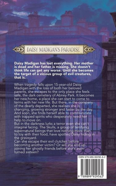 Daisy Madigan has lost everything. Her mother is dead and her father is missing. She doesn't think life can get any worse. Until she becomes the target of a vicious group of evil creatures, that is. When tragedy falls upon 15-year-old Daisy Madigan with the loss of both her beloved parents, she escapes to the only place she feels safe, the dark cemetery of Abney Park. It becomes her new home, a place she can start to come to terms with her new life. But there, in the company of the dearly departed, she realises she is changing, growing stronger and faster by the day. And soon, she finds herself able to communicate with trapped spirits who desperately need her help to move on.But in the darkness lurks a terror even she can't imagine facing. The Skulls, a group of terrifying supernatural beings that love nothing more than to toy with their food, have spotted Daisy hiding in the graveyard.Can she escape their evil clutches before becoming another victim? Or will she end up joining her ghostly friends before she's even turned sixteen?Daisy Madigan's Paradise is a dark and haunting paranormal novella in The Praxos Academy series. If you like strong female characters, mysterious and spooky ghost stories and ruthless villains, then you'll love S G Turner's Daisy Madigan's Paradise. DOWNLOAD YOUR FREE COPY of Daisy Madigan's Paradise to watch an ordinary teen become exceptional TODAY!Praise for Daisy Madigan's Paradise'A fantastically evocative YA novella perfect for both younger and older teens.''Wonderful addition to the Morgan Sisters series! I might suggest reading The Ghost of Josiah Grimshaw first, but this should stand on its own even if you haven't. Such a lovely, well-written story - I highly recommend it and all of her books.'