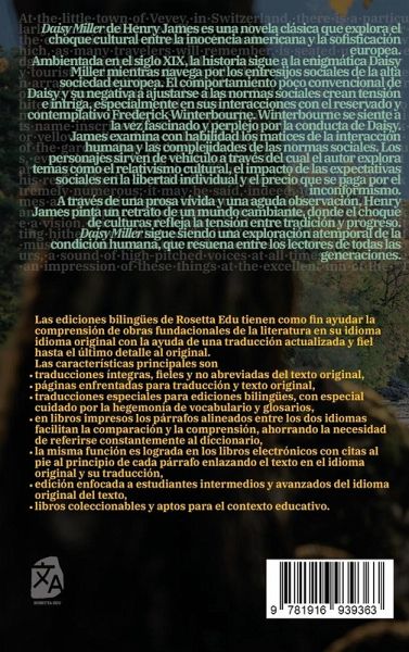 Daisy Miller de Henry James es una novela clásica que explora el choque cultural entre la inocencia americana y la sofisticación europea. Ambientada en el siglo XIX, la historia sigue a la enigmática Daisy Miller mientras navega por los entresijos sociales de la alta sociedad europea. El comportamiento poco convencional de Daisy y su negativa a ajustarse a las normas sociales crean tensión e intriga, especialmente en sus interacciones con el reservado y contemplativo Frederick Winterbourne. Winterbourne se siente a la vez fascinado y perplejo por la conducta de Daisy. James examina con habilidad los matices de la interacción humana y las complejidades de las normas sociales. Los personajes sirven de vehículo a través del cual el autor explora temas como el relativismo cultural, el impacto de las expectativas sociales en la libertad individual y el precio que se paga por el inconformismo. A través de una prosa vívida y una aguda observación, Henry James pinta un retrato de un mundo cambiante, donde el choque de culturas refleja la tensión entre tradición y progreso. Daisy Miller sigue siendo una exploración atemporal de la condición humana, que resuena entre los lectores de todas las generaciones.