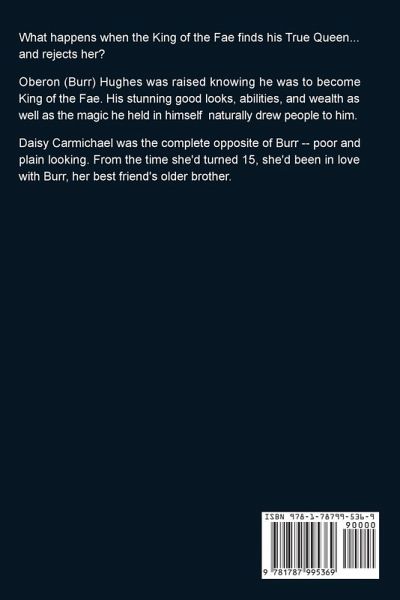 What happens when the King of the Fae finds his True Queen...and rejects her? Oberon (Burr) Hughes was raised knowing he was to become King of the Fae. His stunning good looks, abilities, and wealth as well as the magic he held in himself naturally drew people to him. Daisy Carmichael was the complete opposite of Burr -- poor and plain looking. From the time she'd turned 15, she'd been in love with Burr, her best friend's older brother.