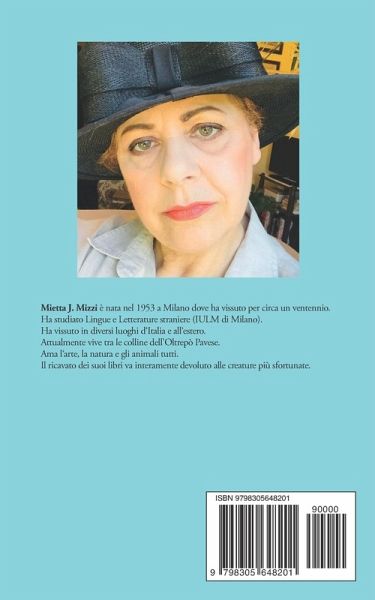 Mietta J. Mizzi è nata nel 1953 a Milano dove ha vissuto per circa un ventennio. Ha studiato Lingue e Letterature straniere (IULM di Milano). Ha vissuto in diversi luoghi d'Italia e all'estero. Attualmente vive tra le colline dell'Oltrepò Pavese. Ama l'arte, la natura e gli animali tutti. Il ricavato dei suoi libri va interamente devoluto alle creature più sfortunate.