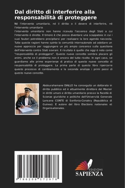 Né l'intervento umanitario, né il diritto o il dovere di interferire, né l'intervento umanitario l'intervento umanitario non hanno ricevuto l'assenso degli Stati a cui l'intervento è diretto. Il timore è che possa diventare una scappatoia in cui i suoi fautori potrebbero precipitarsi per realizzare la loro agenda nascosta. Tutte queste ragioni hanno spinto la comunità internazionale ad adottare un nuovo approccio per raggiungere un più ampio consenso sulla questione dell'intervento contro Stati sovrani. Il risultato è quello che oggi è noto come "responsabilità di proteggere". Questo nuovo concetto sembra placare gli animi, anche se il problema non è ancora del tutto risolto. In ogni caso, se guardiamo alle prime esperienze di pratica di questo nuovo concetto di responsabilità di proteggere. La prima parte di questo libro ripercorre questo processo di cambiamento e la seconda analizza i primi passi di questo nuovo concetto.