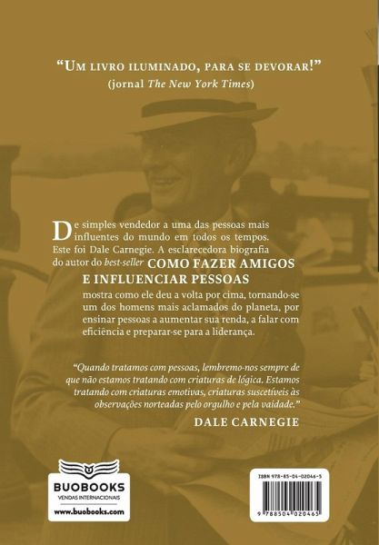 De simples vendedor a uma das pessoas mais influentes do mundo de todos os tempos. Este foi Dale Carnegie, biografado neste livro do americano Steven Watts. A esclarecedora biografia a do autor do best seller Como fazer amigos e influenciar pessoas, mostra como ele deu a volta por cima, tornando-se um dos homens mais aclamados do mundo, por ensinar pessoas a aumentar sua renda, a falar com eficiência e preparar-se para a liderança.