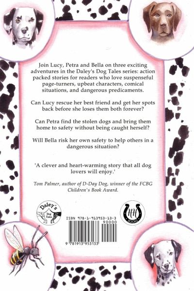 Join Lucy, Petra and Bella on three exciting adventures in the Daley's Dog Tales series: action packed stories for readers who love suspenseful page-turners, upbeat characters, comical situations, and dangerous predicaments. Can Lucy rescue her best friend and get her spots back before she loses them both forever? Can Petra find the stolen dogs and bring them home to safety without being caught herself? Will Bella risk her own safety to help others in a dangerous situation? 'A clever and heart warming story that all dog lovers will enjoy.' Tom Palmer, author of D-Day Dog, winner of the FCBG Children's Book Award.