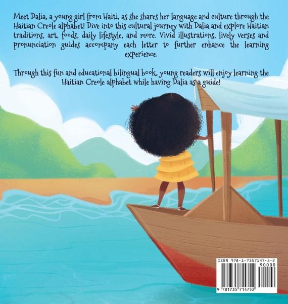 Meet Dalia, a young girl from Haiti, as she shares her language and culture through the Haitian Creole alphabet! Dive into this cultural journey with Dalia and explore Haitian traditions, art, music, foods, daily lifestyle, and more. Vivid illustrations, lively verses and pronunciation guides accompany each letter to further enhance the learning experience. Through this fun and educational book, young readers will enjoy learning about the Haitian alphabet, its language and culture while having Dalia as a guide.