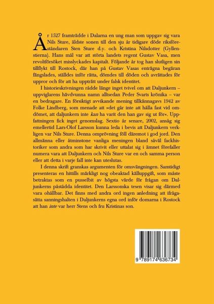 I denna skrift granskas argumenten för omsvängningen. Samtidigt presenteras en hittills märkligt nog obeaktad källuppgift, som måste betraktas som en pusselbit av högsta värde för frågan om Daljunkerns påstådda identitet. Den Larssonska tesen visar sig därmed vara ohållbar. Det finns med andra ord ingen anledning att ifrågasätta sanningshalten i Daljunkerns egna ord inför domarna i Rostock att han inte var herr Stens och fru Kristinas son.