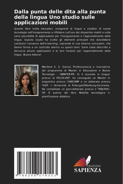 Questo libro invita educatori, insegnanti di lingue e studiosi di nuove tecnologie nell'insegnamento a riflettere sull'uso dei dispositivi mobili e sulle varie possibilità di applicazione per l'insegnamento e l'apprendimento delle lingue. Questo studio ha scelto gli elementi principali che dovrebbero costituire l'universo dell'e-learning, coprendo le sue diverse concezioni, che danno forma a un costrutto teorico su questi temi. Sono state descritte e discusse alcune applicazioni e le loro funzioni per l'apprendimento delle lingue. Buona lettura!