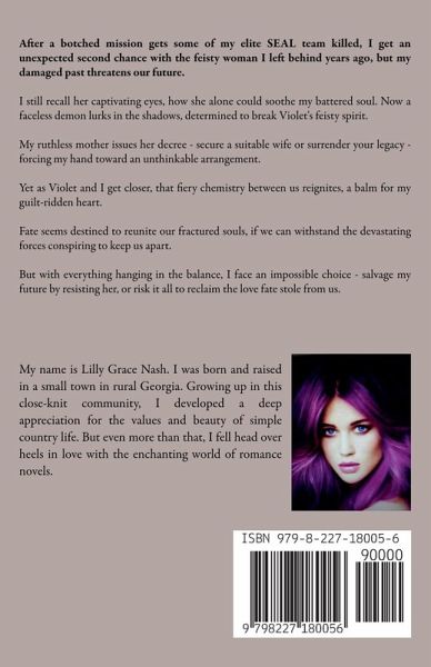 After a botched mission gets some of my elite SEAL team killed, I get an unexpected second chance with the feisty woman I left behind years ago, but my damaged past threatens our future. I still recall her captivating eyes, how she alone could soothe my battered soul. Now a faceless demon lurks in the shadows, determined to break Violet's feisty spirit. My ruthless mother issues her decree - secure a suitable wife or surrender your legacy - forcing my hand toward an unthinkable arrangement. Yet as Violet and I get closer, that fiery chemistry between us reignites, a balm for my guilt-ridden heart. Fate seems destined to reunite our fractured souls, if we can withstand the devastating forces conspiring to keep us apart. But with everything hanging in the balance, I face an impossible choice - salvage my future by resisting her, or risk it all to reclaim the love fate stole from us.