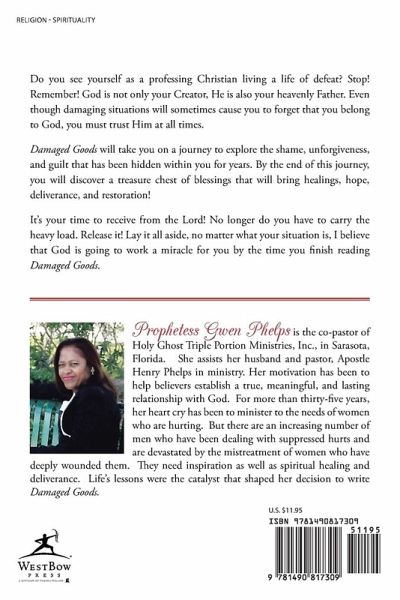 Do you see yourself as a professing Christian living a life of defeat? Stop! Remember! God is not only your Creator, He is also your heavenly Father. Even though damaging situations will sometimes cause you to forget that you belong to God, you must trust Him at all times. Damaged Goods will take you on a journey to explore the shame, unforgiveness, and guilt that has been hidden within you for years. By the end of this journey, you will discover a treasure chest of blessings that will bring healings, hope, deliverance, and restoration! It's your time to receive from the Lord! No longer do you have to carry the heavy load. Release it! Lay it all aside, no matter what your situation is, I believe that God is going to work a miracle for you by the time you finish reading Damaged Goods.