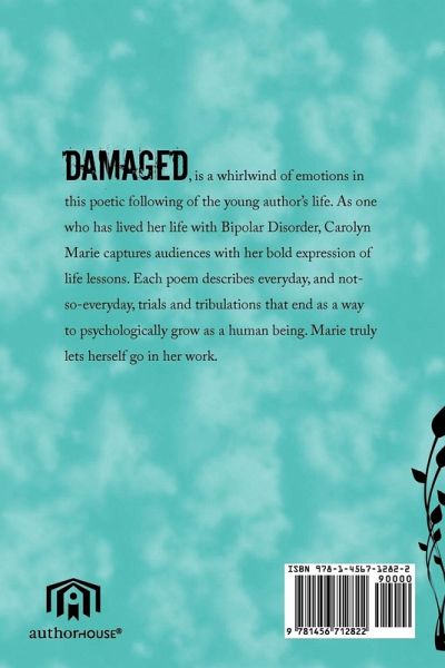 Damaged, is a whirlwind of emotions in this poetic following of the young author's life. As one who has lived her life with Bipolar Disorder, Carolyn Marie captures audiences with her bold expression of life lessons. Each poem describes everyday, and not-so-everyday, trials and tribulations that end as a way to psychologically grow as a human being. Marie truly lets herself go in her work.