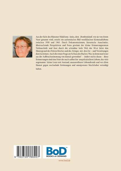 Aus der Sicht des Hüstener Mädchens Anita, dem 'Bombenkind', wie sie von ihrem Vater genannt wird, ersteht ein authentisches Bild westfälischen Kleinstadtlebens zwischen 1950 und 1965. Durch Dokumentationen, literarische Ausschnitte, überraschende Perspektiven und Fotos gewinnt der kleine Erinnerungsroman Tiefenschärfe und lässt durch die scheinbar heile Welt der 50-er Jahre den Hintergrund des Dritten Reiches und des Krieges mit den Zer - und Verstörungen durchscheinen. Auch die ernste Frage am Schluss des Buches: Was ist denn nun heute aus der Aufbruchsstimmung von damals geworden? - ändert nichts daran - diese Erinnerungen sind eine Feier des nach außen hin unspektakulären Lebens, das viele sogenannte kleine Leute mit Anstand, unausrottbarer Lebensfreude und vor allem Humor gegen wechselnde Strömungen und omnipotente Machthaber verteidigt haben.