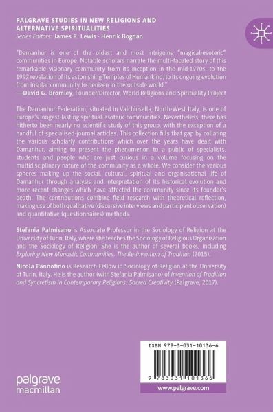 "This volume, composed of thirteen chapters written by Italian scholars, is intended to be an up-to-Date study concerning a new religious movement (NRM), The Community of Damanhur. ... a recommended reading for those interested in the recent developments of The Community of Damanhur." (Davide Marino, Religious Studies Review, Vol. 49 (3), September, 2023)