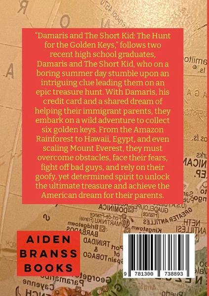 "Damaris and The Short Kid: The Hunt for the Golden Keys" follows two recent high school graduates, Damaris and The Short Kid, who, on a boring summer day, stumble upon an intriguing clue that leads them on an epic treasure hunt. With Damaris' credit card and a shared dream of helping their immigrant parents, they embark on a wild adventure to collect six golden keys. From the Amazon Rainforest to Hawaii, Egypt, and even scaling Mount Everest, they must overcome obstacles, face their fears, fight off bad guys, and rely on their goofy yet determined spirit to unlock the ultimate treasure and achieve the American dream for their parents. Visit AidenBranssBooks.com