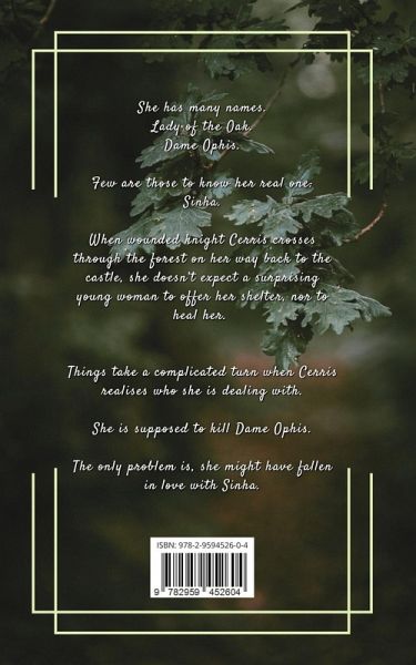 She has many names. Lady of the Oak. Dame Ophis. Few are those to know her real one. Sinha. When wounded knight Cerris crosses through the forest on her way back to the castle, she doesn't expect a surprising young woman to offer her shelter, nor to heal her. Things take a complicated turn when Cerris realises who she is dealing with. She is supposed to kill Dame Ophis. The only problem is, she might have fallen in love with Sinha.