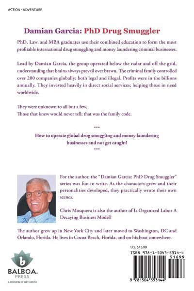 Damian Garcia: PhD Drug Smuggler The story of Damian Garcia and the international drug trade in opium and hashish by PhD students in New York City began in 1972. They first met as financially hungry graduate students. They combined their expertise and intellect in business, chemistry, banking, and law to develop extremely discreet and enormously profitable global drug smuggling and money laundering enterprises. The financial returns exceeded their wildest imaginations, growing into the billions of dollars over time. They invested in social services helping those in need, legitimate businesses and global investments that continue to prosper. Money laundering is the back end of the international drug trade, and converting drug money into legal income is an expensive, complex, and dangerous process. The family believed that brains always prevailed over brawn. As business grew, they expanded their product lines to include the finest Thai marijuana and purest LSD-25 acid. They manufactured the Thai marijuana products into six-inch opium dipped strawberry flavored sticks and new Park Roads cigarettes. The group invented the process for converting concentrated liquid LSD-25 into premium Aspirin-Acid pills. Their clientele included professors, artists, politicians, doctors, lawyers, accountants, and elite professionals worldwide. Global sales skyrocketed. When we re-join the group in 1978, they have taken drug smuggling to the next level. Using the investor-franchisee business model, they developed their criminal organizations into multi-billion dollar international drug smuggling and money-laundering enterprises. The group owns and controls over 200 legitimate companies and financial institutions worldwide. Those that knew would never tell; that was the family code. This is the continuation of their remarkable success...