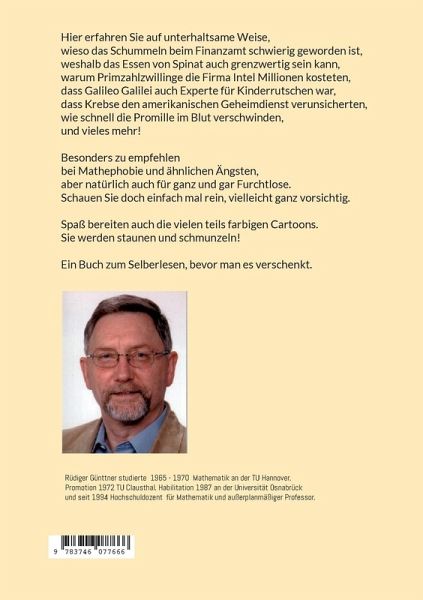 Hier erfahren Sie auf unterhaltsame Weise,wieso das Schummeln beim Finanzamt schwierig geworden ist,weshalb das Essen von Spinat auch grenzwertig sein kann,warum Primzahlzwillinge die Firma Intel Millionen kosteten,dass Galileo Galilei auch Experte für Kinderrutschen war,dass Krebse den amerikanischen Geheimdienst verunsicherten,wie schnell die Promille im Blut verschwinden,und vieles mehr!Besonders zu empfehlen bei Mathephobie und ähnlichen Ängsten,aber natürlich auch für ganz und gar Furchtlose.Schauen Sie doch einfach mal rein, vielleicht ganz vorsichtig.Spaß bereiten auch die vielen teils farbigen Cartoons.Sie werden staunen und schmunzeln!Ein Buch zum Selberlesen, bevor man es verschenkt.