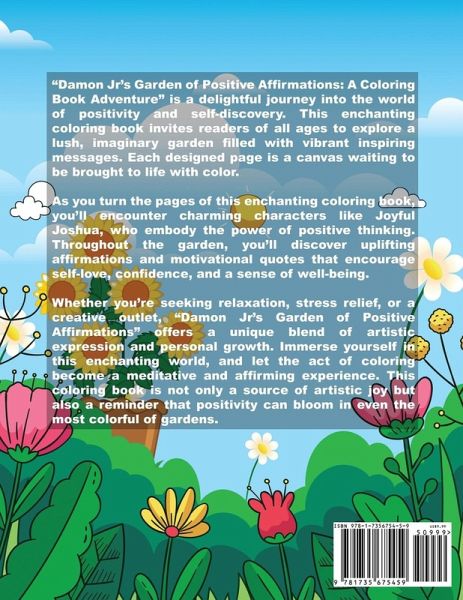 Damon Jr's Magical Garden Adventure is a heartwarming story that invites young readers on an enchanting journey through the world of Damon Jr's positive imagination. Join Damon Jr as he discovers a secret garden filled with wonder, self-belief, and inspiration. In this captivating story, children will follow Damon Jr as he befriends fascinating creatures, explore pathways, and uncovers the power of positivity and imagination. Each page is adorned with vibrant illustrations that bring this magical garden to life, making it a feast for the eyes and the imagination. As young readers embark on this enchanting adventure, they'll not only be entertained but also inspired to believe in the extraordinary possibilities that lie within their own hearts and minds. Damon Jr's Magical Garden Adventure is a tale of creativity, friendship, and the magic that resides in the world around us, just waiting to be discovered. Join Damon Jr as he takes you on a journey you'll want to revisit time and time again. This book is not just a story; it's an invitation to explore the limitless realms of the power of positivity, self-belief, and discover the beauty of the world through the eyes of a child.