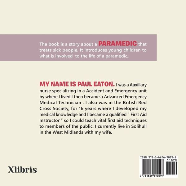 The book is a story about a Paramedic that treats sick people. It introduces young children to what is involved to the life of a paramedic.