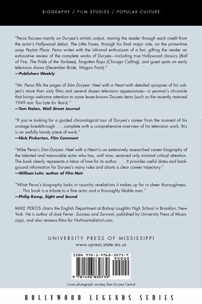 Dan Duryea (1907-1968) made a vivid impression on moviegoers with his first major screen appearance as the conniving Leo Hubbard in 1941's classic melodrama The Little Foxes. His subsequent film and television career would span from 1941 until his death. Duryea remains best known for the nasty, scheming villains he portrayed in such noir masterpieces as Scarlet Street, Criss Cross, and The Woman in the Window. In each of these, he wielded a blend of menace, sleaze, confidence, and surface charm. This winning combination led him to stardom and garnered him the adoration of female fans, even though Duryea's onscreen brutality so often targeted female characters. Yet this biography's close examination of Duryea's oeuvre finds him excelling in various roles in many genres--war films, westerns, crime dramas, and even the occasional comedy. Dan Duryea: Heel with a Heart is a full-scale, comprehensive biography that examines the tension between Duryea's villainous screen image and his Samaritan personal life. At home, he proved to be one of Hollywood's most honorable and decent men. Duryea remained married to the former Helen Bryan from 1931 until her death in 1967. A dedicated family man, he and Helen took an active role in raising their children and in the community. In his career, Duryea knew villainous roles were what the public wanted--there would be a public backlash if fans read an article depicting what a decent guy he was. Frustrated that he couldn't completely shake his screen image and public persona, he wrestled with this restriction throughout his career. Producers and the public did not care to follow any new directions he hoped to pursue. This book, written with Duryea's surviving son Richard's cooperation, fully explores the life and legacy of a Hollywood icon ready for rediscovery.