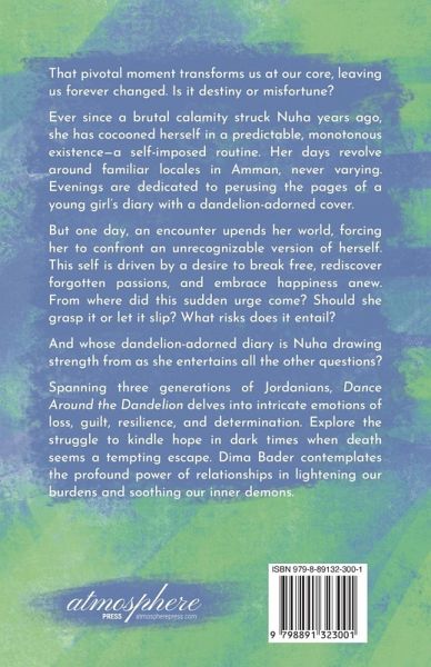 That pivotal moment transforms us at our core, leaving us forever changed. Is it destiny or misfortune? Ever since a brutal calamity struck Nuha years ago, she has cocooned herself in a predictable, monotonous existence-a self-imposed routine. Her days revolve around familiar locales in Amman, never varying. Evenings are dedicated to perusing the pages of a young girl's diary with a dandelion-adorned cover. But one day, an encounter upends her world, forcing her to confront an unrecognizable version of herself. This self is driven by a desire to break free, rediscover forgotten passions, and embrace happiness anew. From where did this sudden urge come? Should she grasp it or let it slip? What risks does it entail? And whose dandelion-adorned diary is Nuha drawing strength from as she entertains all the other questions? Spanning three generations of Jordanians, Dance Around the Dandelion delves into intricate emotions of loss, guilt, resilience, and determination. Explore the struggle to kindle hope in dark times when death seems a tempting escape. Dima Bader contemplates the profound power of relationships in lightening our burdens and soothing our inner demons.