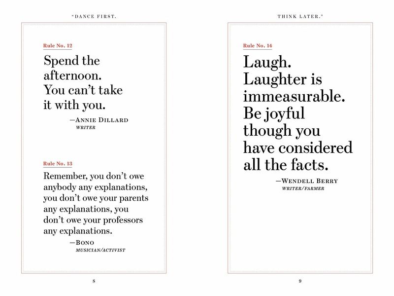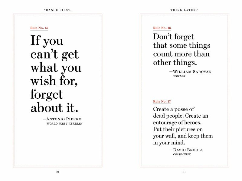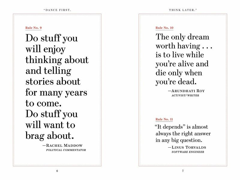 A collection of the greatest life wisdom from an unexpected group of speakers, doers, and thinkers. It includes 618 rules to live by - funny, sly, declarative, thoughtful, offhanded, clever, and always profound.